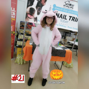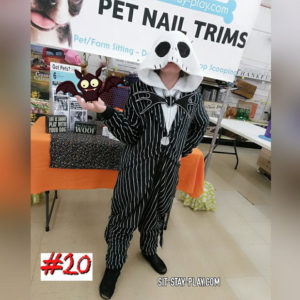 As a matter of fact, I wore a different costume to EVERY event this year. It was a little challenging trying to figure out what to wear that wouldn’t impede my ability to work with the pets in trimming nails. AND trying to keep the costumes ‘friendly’ and not too scary so I wouldn’t scare all of the furry friends was also difficult. In the end, I figured it out and still have several on the backburner for upcoming events.